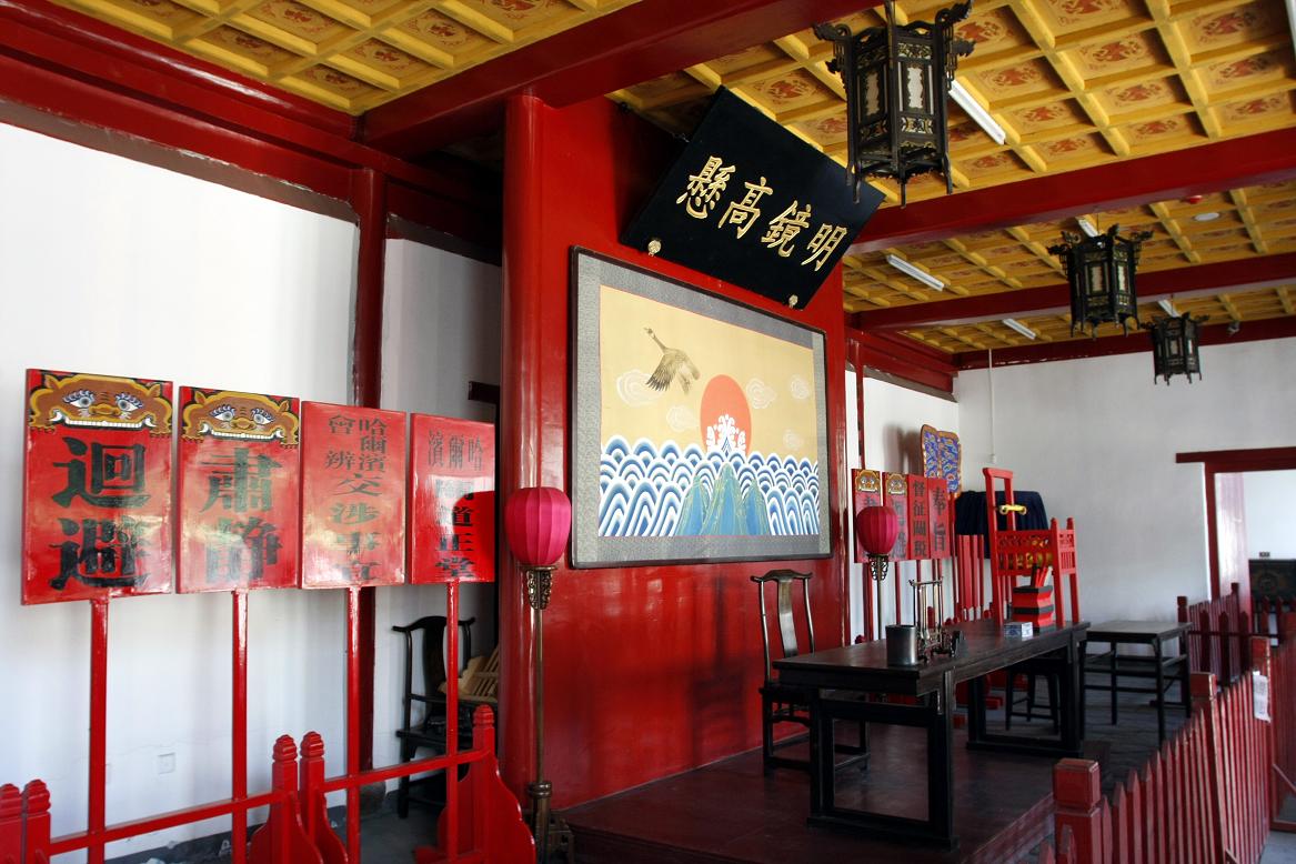 哈尔滨关道也称滨江关道衙门,俗称道台府,光绪末年由清政府建立,是哈尔滨当时最高级别行政机构,同时也是中国封建社会建立的最后一个传统式衙门。哈尔滨关道的设治,成为哈尔滨城市发展史上的重要历史见证。2005年5月哈尔滨关道开始实施修复工程,并于同年10月31日举行了修缮工程竣工仪式,几经沧桑的道台府被批准为省级文物保护单位。现坐落于哈尔滨道外区北十八道街和北十九道街之间,是哈尔滨市重要标志性建筑之一。修复后的哈尔滨关道占地面积28000平方米,总建筑面积2617平方米,整体建筑坐北面南,按古式建筑风格呈对称式布局,遵循封建礼仪,左文右武、前衙后寝,主从有序、错落有致,庄重不失洒脱,威严不失活泼,堪称中国传统式建筑与北方建筑完美结合的经典之作,宛如一部气势恢宏的古代衙署艺术长卷。园内展厅陈列文物藏品千余件,具有极高的科考和收藏价值。近期根据遗址公园的经营定位又新增了戏曲表演、道台升堂审案演绎、关道艺坊等表演类节目,增设鸿运石、鸿运路、同心石、同心桥、许愿树等景观。作为哈尔滨市开埠标志,哈尔滨关道历史意义深远,文化韵味醇厚,民俗特色浓郁,具有极高的旅游观光价值,是我市重要的历史、艺术、科学知识教育场所。其作为宝贵的历史文化资源和崭新的城市特色景观,将成为展示城市历史风貌,开发旅游观光,进行爱国主义教育的重要场所。